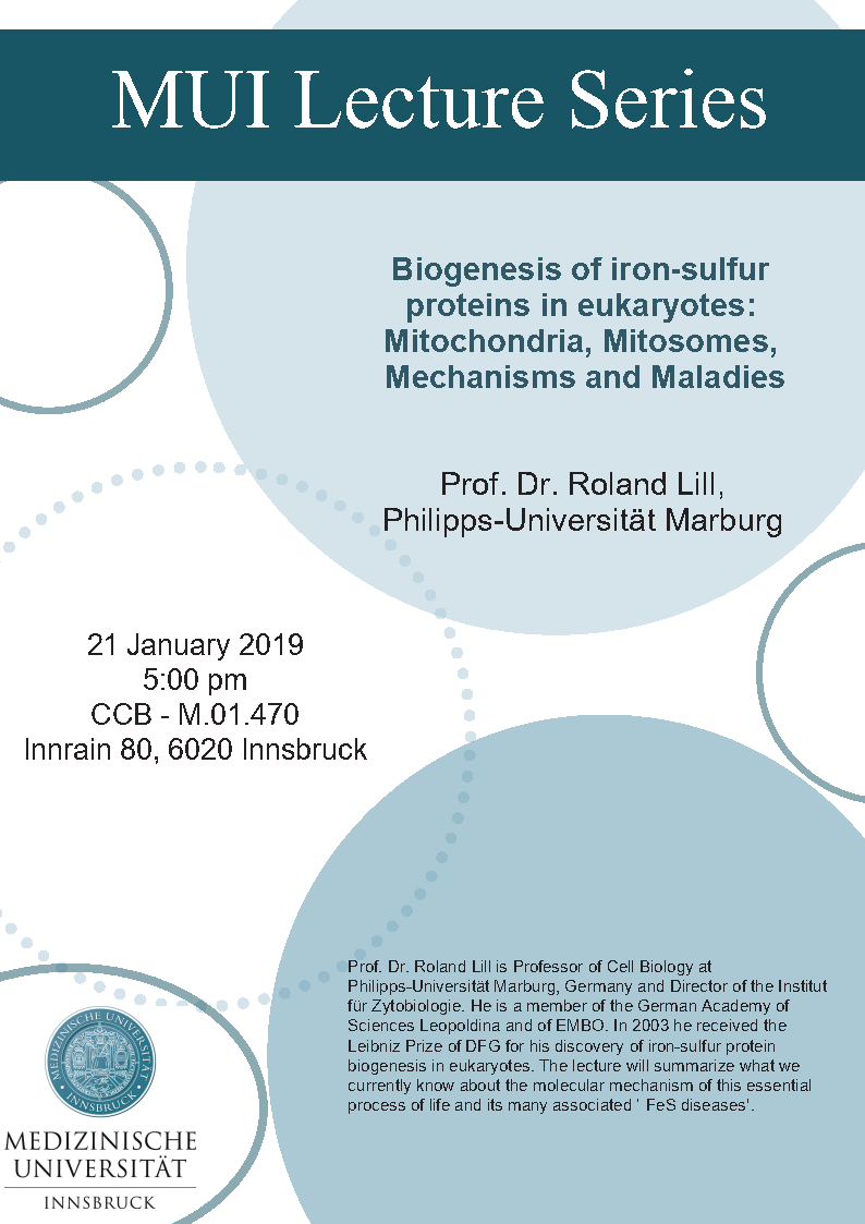 Biogenesis of iron-sulfur proteins in eukaryotes: Mitochondria, Mitosomes, Mechanisms and Maladies Prof. Roland Lill