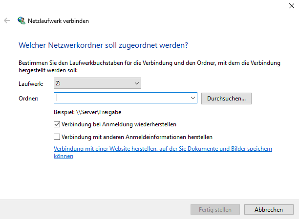 Manuelle Verbindung der Laufwerke auf dem Windows PC
