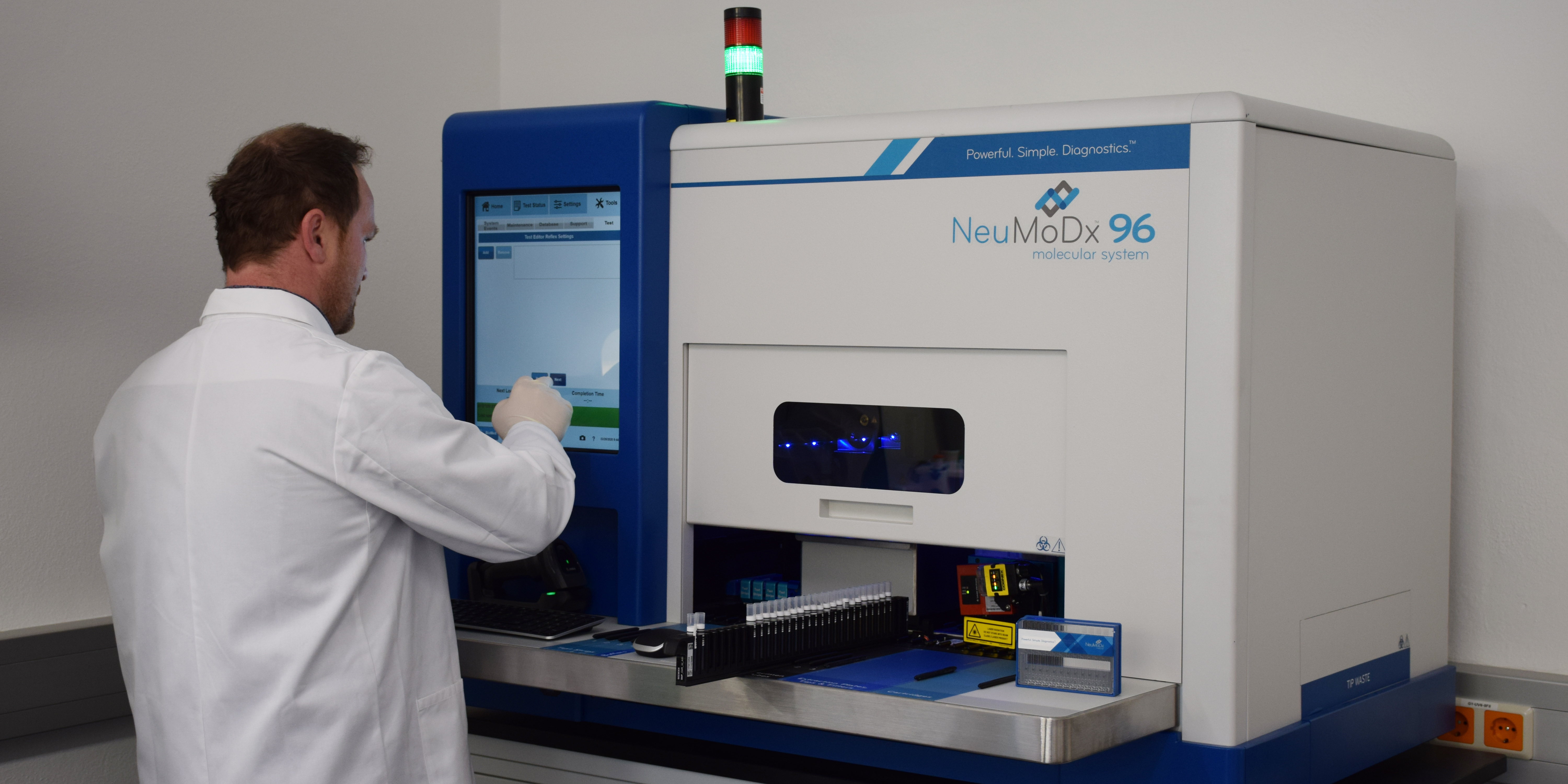 BU: Das neue Gerät am Institut für Virologie verdoppelt die Testkapazität. @MUI/Hoffmann-Ammann