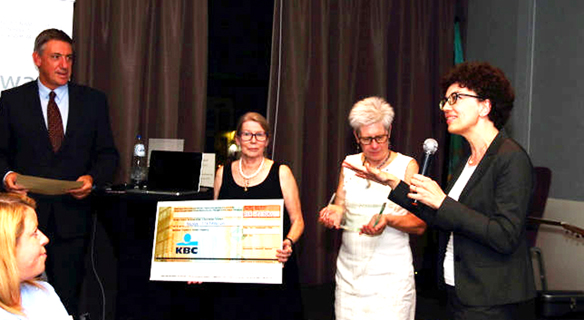 Nadia Stefanova (r.) bei der Preisverleihung mit Jan Jambon, Vizepremier Belgien, Ritje Schouppe-Moons, Präsidentin des Verwaltungsrates (3.v.r.) und Christine Huybrechts, Schatzmeisterin (2.v.r.).