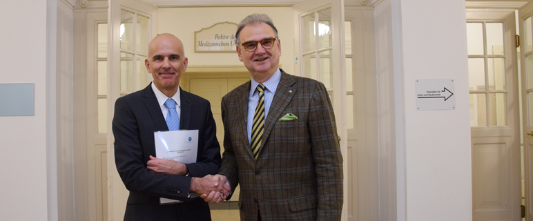 Seit 1. Jänner 2019 ist Markus Reindl Professor für Experimentelle Neurologie – ein Fachgebiet, in dem der studierte Biologe bereits seit mehr als 20 Jahren wichtige therapierelevante Forschungsbeiträge leistet. Rektor W. Wolfgang Fleischhacker freute sich bei der Vertragsunterzeichnung, einen langjährigen Kollegen und ausgewiesenen Experten berufen zu dürfen.