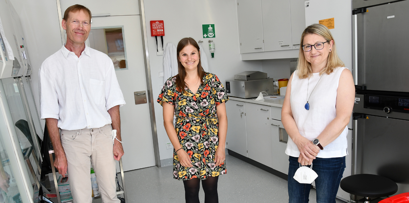 (15.07.2021, Text: D. Heidegger, Bild Leber: A. Janecke, Gruppenfoto: v.l.: Andreas Janecke mit seinen Mitarbeiterinnen an der Pädiatrie I, Karin Kreidl und Dorota Elzbieta Garczarczyk-Asim. © D.Bullock)