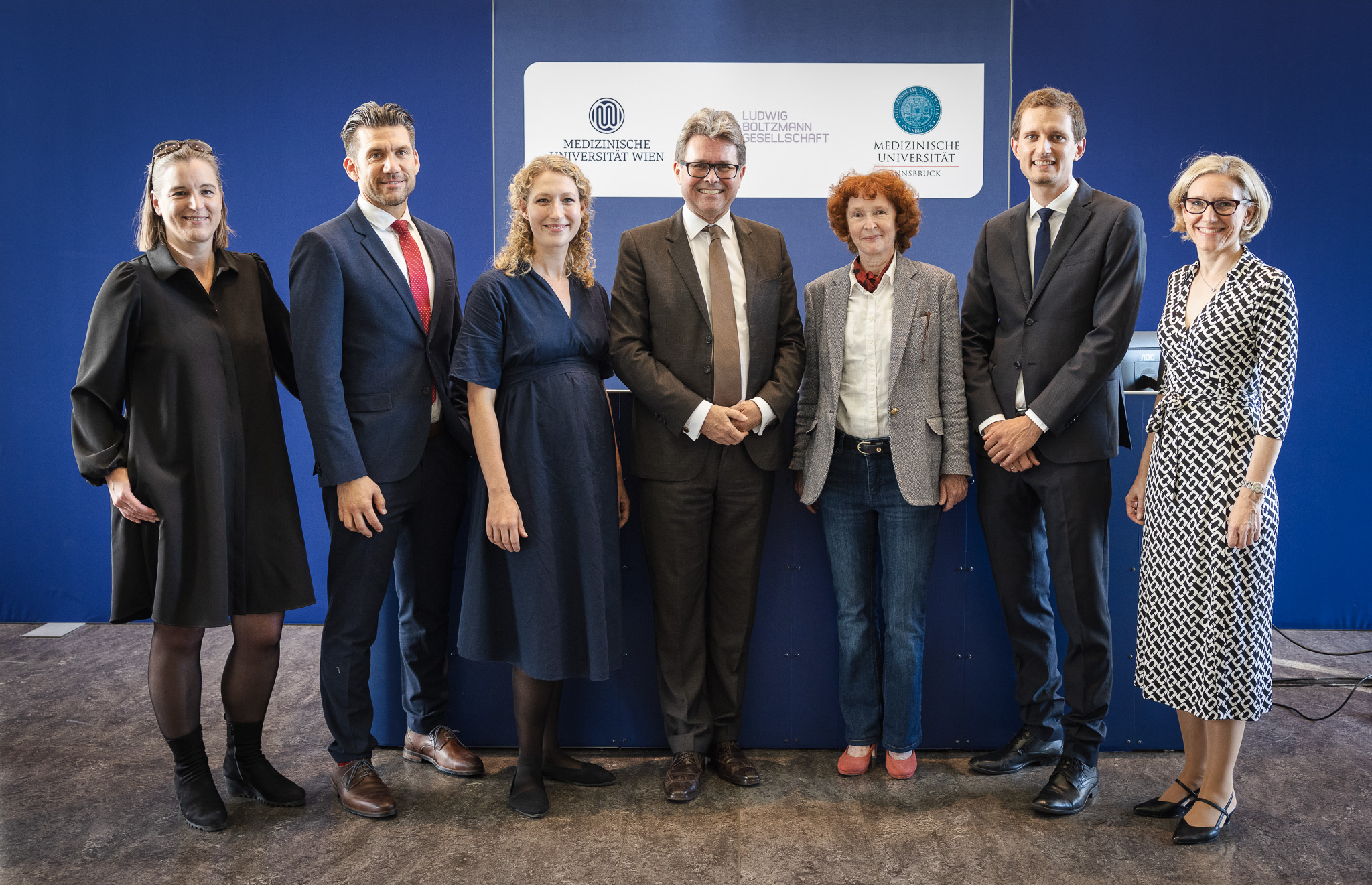 BU: v.l.: Marisa Radatz, LBG-Geschäftsführerin; Thomas Reiberger, Medizinische Universität Wien; Anna Sophie Berghoff, Medizinische Universität Wien; Martin Polaschek, Bundesminister für Bildung, Wissenschaft und Forschung; Freyja-Maria Smolle-Jüttner, LBG-Präsidentin; Sebastian Reinstadler, Medizinische Universität Innsbruck; Elvira Welzig, LBG-Geschäftsführerin. ©LBG