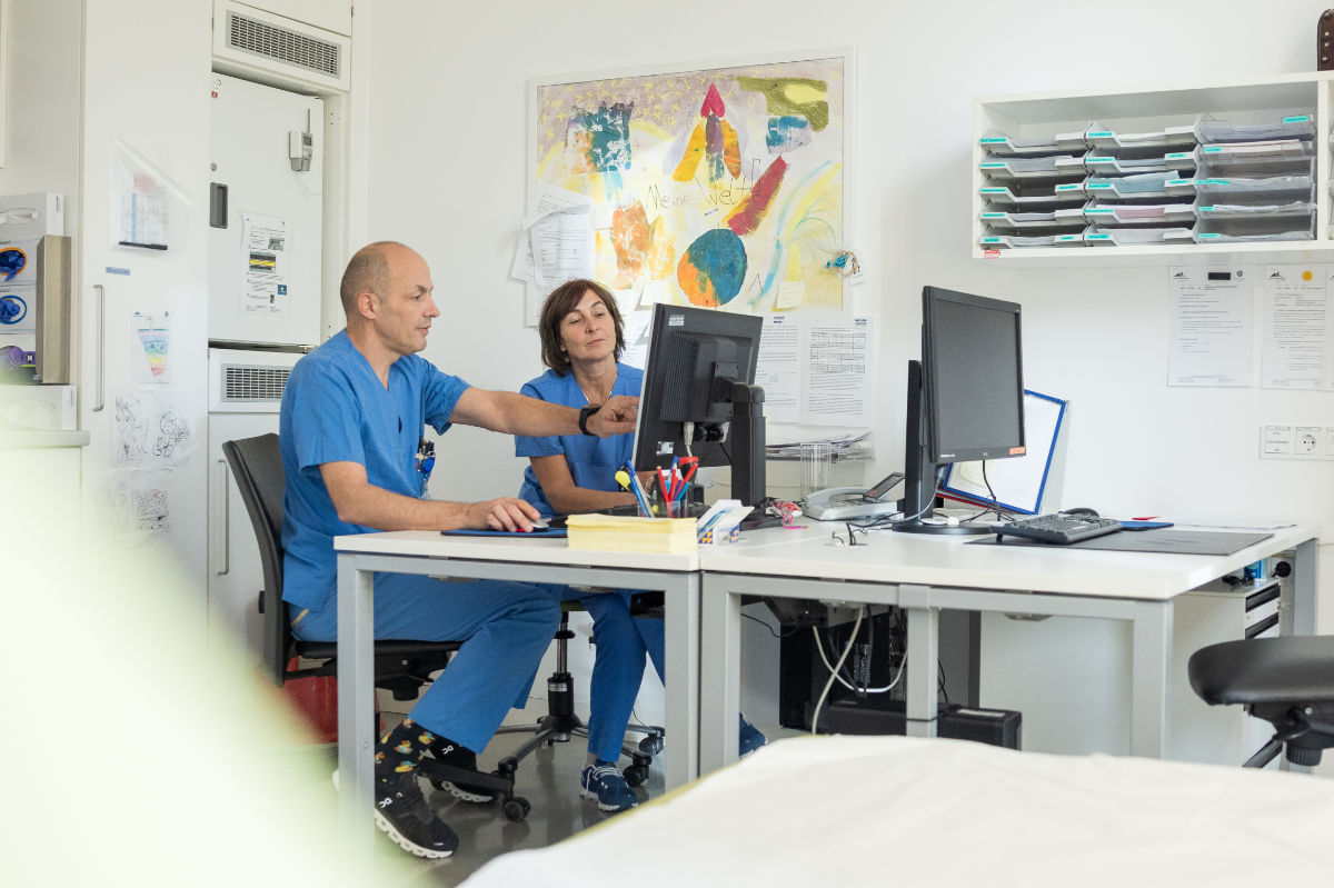 Roman Crazzolara und seine Kollegin Gabriele Kropshofer bei einer telemedizinischen Sprechstunde. (Foto: MUI/F. Lechner)