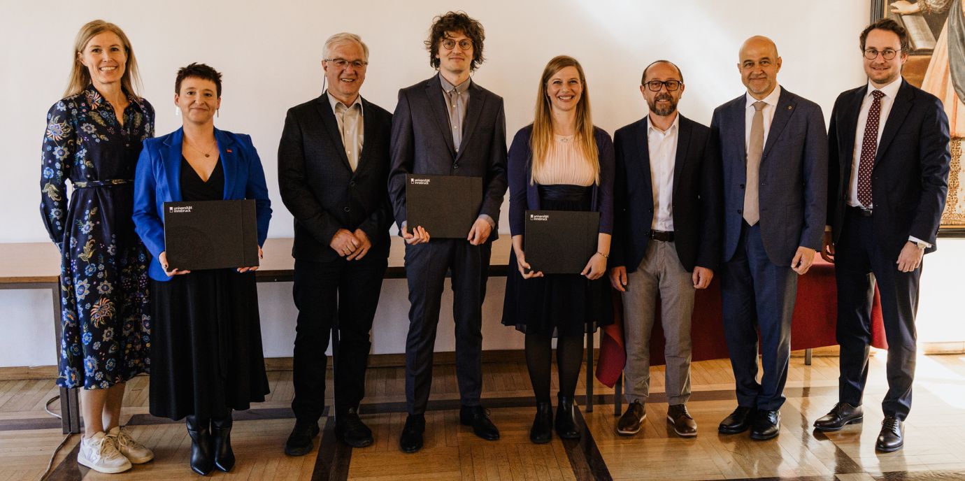 Stephan Agnolazza-Hoop, Regierungsmitarbeiter im Ministerium für Äußeres, Bildung und Sport, reiste aus Liechtenstein an, um den in diesem Jahr ausgezeichneten Wissenschaftler:innen zu gratulieren. „Unsere Welt verändert sich rasant und wir stehen vor komplexen Herausforderungen. Bildung und Wissenschaft sind entscheidend, um innovative Lösungen zu finden und die Zukunft aktiv zu gestalten“, hebt Agnolazza-Hoop die Bedeutung der universitären Forschung hervor.