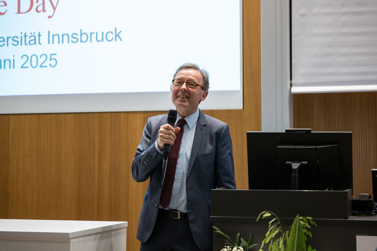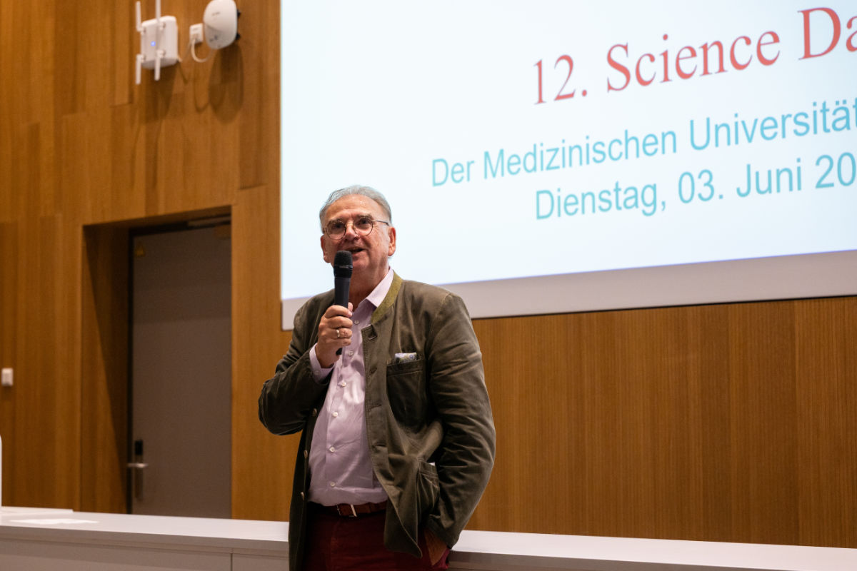 50 bis 60 Habilitationen werden an der Medizinischen Universität im Durchschnitt jedes Jahr verzeichnet. Viele Jahre führte in der Habilitationskommission Alexander Hüttenhofer den Vorsitz, der 12. Science Day wäre für ihn der letzte in dieser Funktion gewesen – krankheitsbedingt war Hüttenhofer verhindert. Sein Nachfolger Romuald Bellmann gratulierte den Ausgezeichneten. Deren Habilitationen wurden dann zunächst von Christine Bandtlow, Vizerektorin für Forschung und Internationales, vorgestellt, anschließend sprachen die sechs Habilitand:innen selbst über ihren akademischen Werdegang und ihre wissenschaftliche Arbeit, bevor ihnen die Urkunden überreicht wurden. Mit ihnen freuten sich Angehörige und Freund:innen.