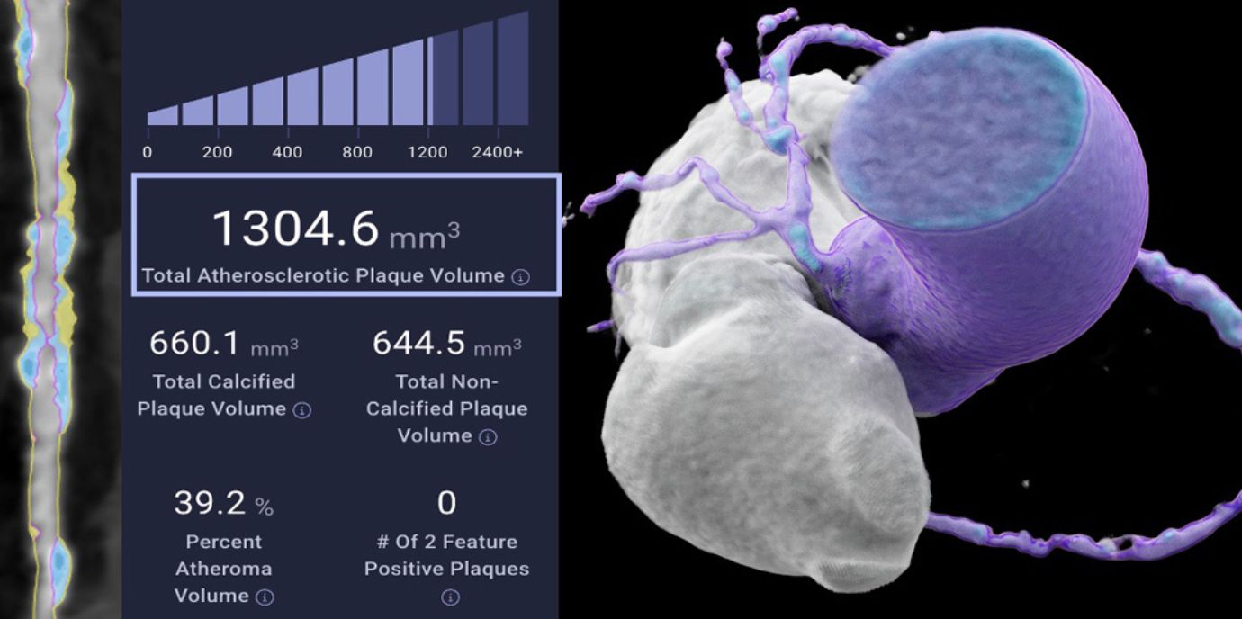 Darüber hinaus wurde in diese Studie die in den USA bereits kommerziell verfügbare KI-gesteuerte Plattform zur AI-QCT Plaqueanalyse der Firma Cleerly Inc. anhand von 16 prognostischen Merkmalen eingesetzt. „Diese webbasierte Software quantifiziert innerhalb weniger Minuten einen gesamten dreidimensionalen CT Datensatz hinsichtlich Schweregrad der Koronargefäßstenosen und atherosklerotischem Plaquevolumen und dessen Zusammensetzung. Somit können nicht nur Kalkplaques, sondern auch nicht-kalzifizierte Plaques oder lipidreiche Hochrisikoplaques (HRP) quantifiziert werden. Letztere stellen aufgrund der Plaquerupturgefahr das höchste Risiko für einen Myokardinfarkt dar. In der klinischen Praxis wird derzeit die standardisierte Befundung für die Patientinnen und Patienten mittels visueller und semiquantativer Beurteilung der Koronargefässe durchgeführt. Mittels der KI-gestützten quantitativen koronaren CT-Angiographie (AI-QCT) wäre nun eine viel schnellere und noch präzisere Befundung möglich –  einschließlich kardiovaskulärer Risikostratifizierung, welche letztlich in weiterführende Therapieentscheidungen und verstärkte präventive Maßnahmen münde sollte.