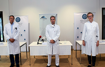 BU: (vl) Raimund Helbok, Oberarzt an der Univ.-Klinik für Neurologie, Günter Weiss, Direktor der Univ.-Klinik für Innere Medizin II, Judith Löffler-Ragg, leitende Oberärztin, Pneumologische Ambulanz & Projektleiterin, Univ.-Klinik für Innere Medizin II