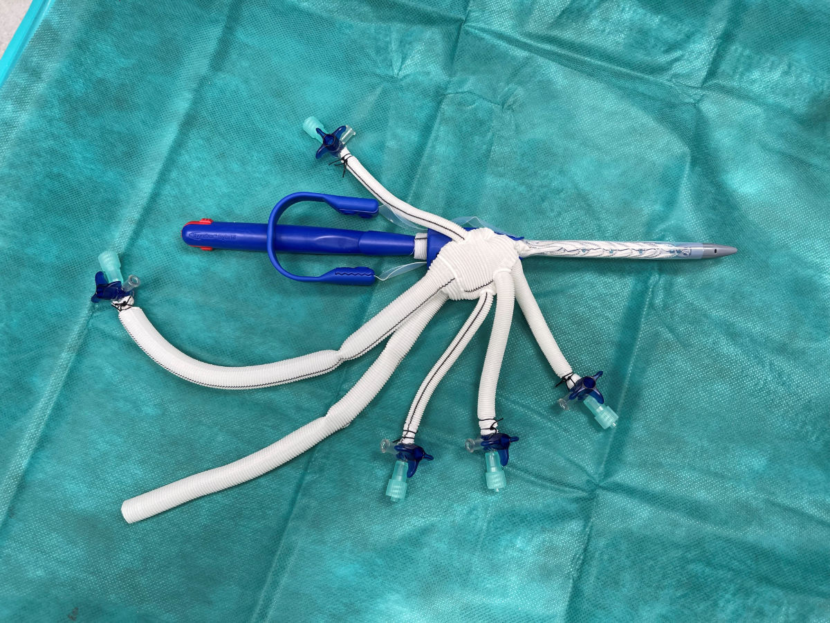 Innsbruck, 12. Juni 2023: Thoracoflo ist eine Prothese aus Kunststoff mit ca. 40 cm Länge, die über den Bauchraum in den Brustraum eingesetzt und mit ihren vielen Ästen an die einzelnen Bauchorgane angenäht wird.