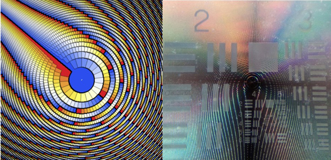 A similar technique was used to design a new zoom system, based solely on rotating DOEs with a quadrupole lens structure – a world first. Typically, DOE-based systems have the problem that they are strongly dispersive, i.e. they are suited only to a certain light colour. In our recent research, however, we have developed a new method to circumvent this issue by using multi-order diffractive optics. This allows us to use these elements in multicoloured and white light implementations, a highly desirable feature for applications in advanced camera systems.