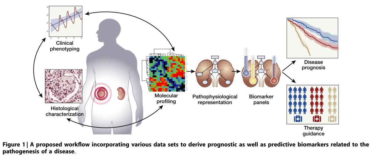 Fig. 1: Systems biology data integration allows pathophysiological disease modelling to delineate biomarkers for disease prognosis and therapy guidance.