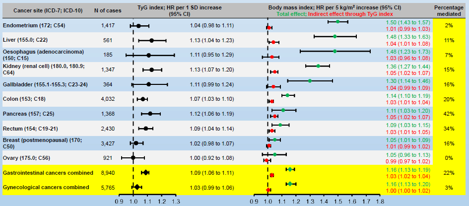 • Fritz, Josef; Bjørge, Tone; Nagel, Gabriele; Manjer, Jonas; Engeland, Anders; Häggström, Christl; Concin, Hans; Teleka, Stanley; Tretli, Steinar; Gylling, Björn; Lang, Alois; Stattin, Pär; Stocks, Tanja; Ulmer, Hanno: The triglyceride-glucose index as a measure of insulin resistance and risk of obesity-related cancers. INT J EPIDEMIOL. 2020 Feb 1;49(1):193-204.