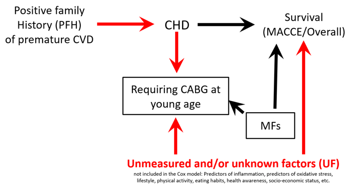 In collaboration with the department of cardiac surgery, we have been able to show that a positive family history has beneficial effects on long-term outcome in young coronary artery bypass grafting patients. We explained this paradoxical finding with the aid of causal reasoning techniques and even attracted the interest of Judea Pearl, one of the grand masters in the field of causal inference (Fig. 5).