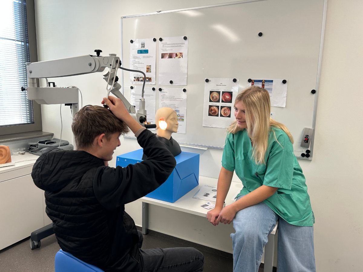 Großes Interesse gab es am „Skills Lab“ der Med Uni Innsbruck, in dem die Studierenden ihre klinisch-praktischen Fähigkeiten trainieren und wo an diesem Tag die jungen Besucher:innen Blutabnahmen an Modellen durchführen oder Wiederbelebungen simulieren konnten. Die Schüler:innen konnten sich mittels 3D-Brille auch auf die Gletscherexpedition „Vogel aus dem Eis“ begeben und an zwei Führungen sowie einer Vorlesung in der Anatomie teilnehmen. Das Interesse der Jugendlichen war bei allen Angeboten groß. Die Med Uni Innsbruck bedankt sich bei allen Beteiligten für die Zusammenarbeit und das gute Gelingen.