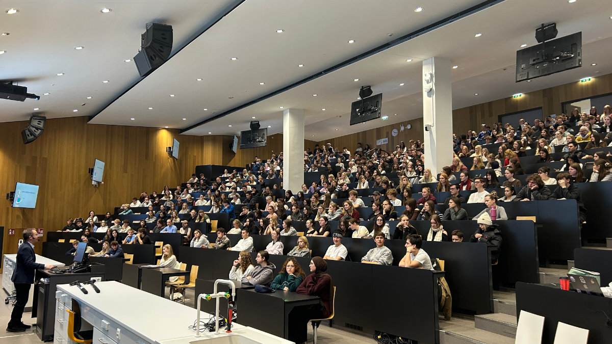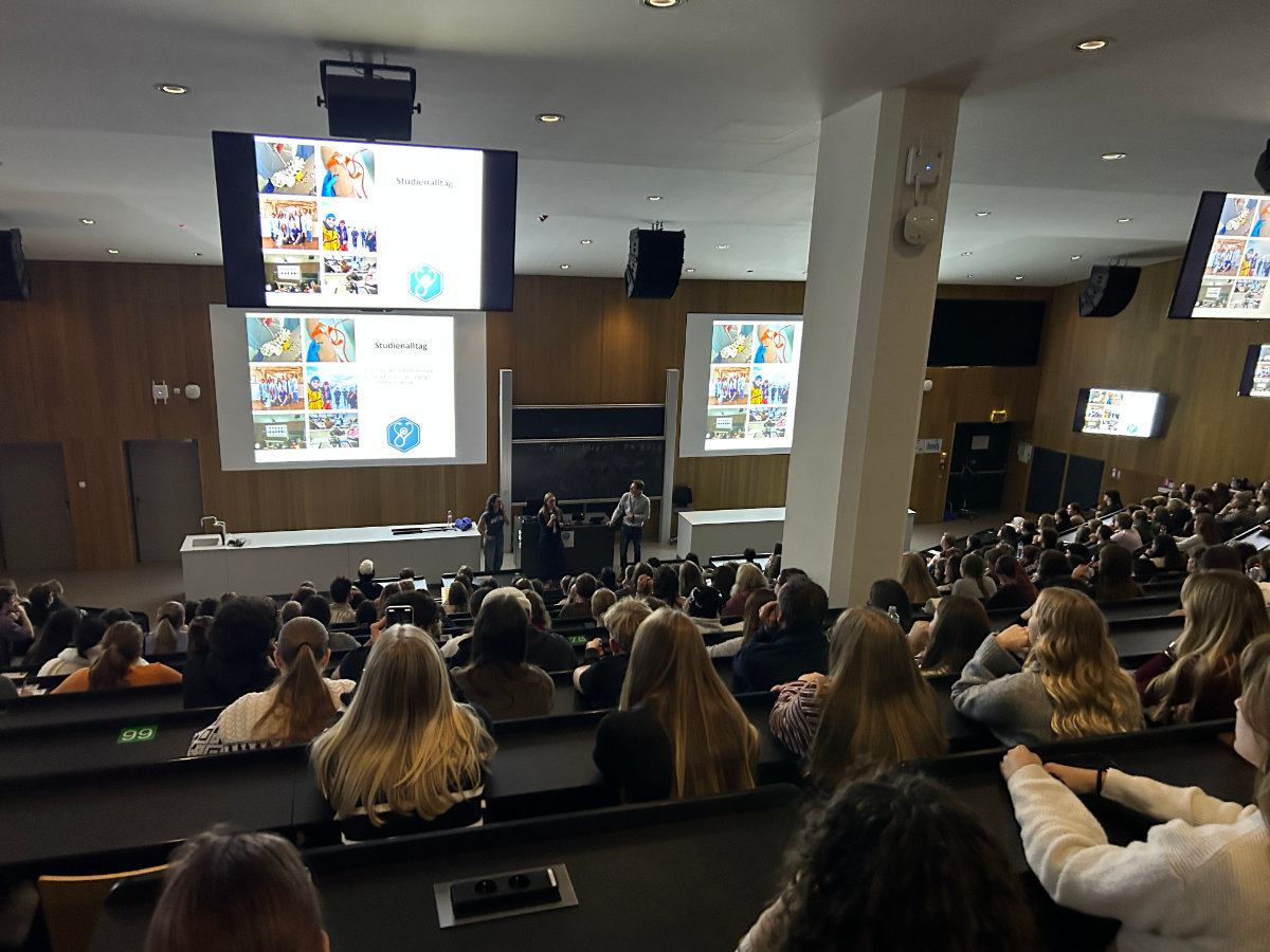 Im vollen Audimax gab Wolfgang Prodinger, Vizerektor für Lehre und Studienangelegenheiten, Einblick in das Studienangebot, die Aufnahmeverfahren und den Studienbeginn, die Schüler:innen stellten aber auch Fragen zu Prüfungen und Auslandsaufenthalten. Andere Vorträge beschäftigten sich mit Neuroradiologie und dem Thema „Traumberuf Hausarzt“. Auch die Studienvertretungen für Humanmedizin, Zahnmedizin und Molekulare Medizin standen ihren potentiellen zukünftigen Studienkolleg:innen Rede und Antwort.